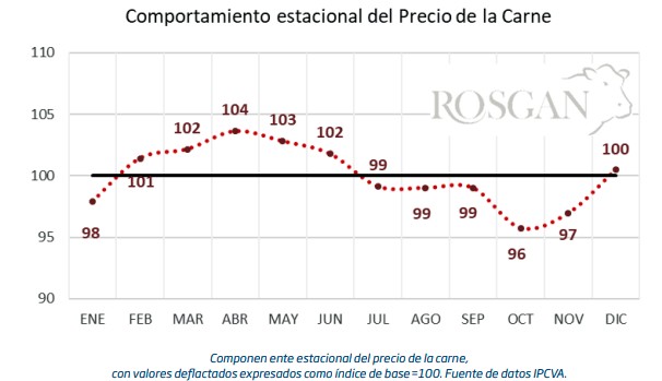 Por otra parte, marzo es un mes en el cual los precios de la carne vacuna tienden a aumentar, acompañado por el aumento del consumo en los hogares. “Se trata del inicio de la temporada escolar donde las familias retoman hábitos de consumo más estables, ya fuera del período de verano donde las dietas suelen ser más ligeras y menos elaboradas”, comentó Rosgan.