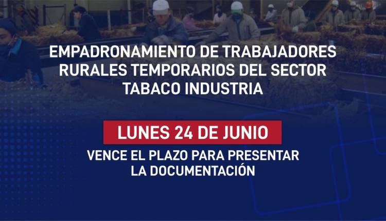 Programa Intercosecha: hasta hoy lunes 24 se empadronará a obreros del sector tabaco industria