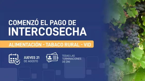Hoy comienza el pago del programa Intercosecha en Salta para trabajadores temporarios de los sectores tabaco rural, alimentación y vid, sin importar la terminación de DNI.